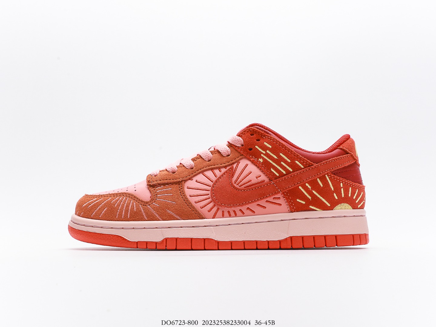 Dirty Orange Winter Solstice A pair of shoes to celebrate the Chinese solar term “Winter Solstice”. The color scheme is presented in three different saturation reds, and is made of suede and delicate leather stitching. In addition to the striped embroidery on the shoe body, there are sunset shapes on both sides of the heel. The tongue label is changed to a sunset pattern and the exact date of the winter solstice “21 12211559” (359 pm on December 12, 2021, GMT).