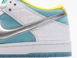 Nike FTC x Nike SB Dunk Low white, silver and blue color scheme Dunk